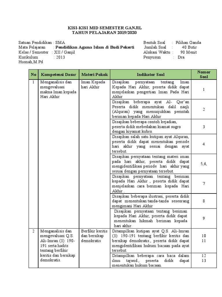 Mar 07, 2021 · contoh soal pilihan ganda contoh soal dan materi pelajaran 3. Contoh soal berpikir kreatif dan kritis. Musyawarah akan mengajarkan kepada peserta musyawarah agar bersikap hal demikian. Pembaca sekolahmuonline, berikut ini kami sajikan untuk anda contoh soal pendidikan agama islam dan budi pekerti (paib) kelas xii sma/ma/smk/mak beserta jawwaban atau pembahasannya. Jawablah pertanyaan berikut dengan benar dan tepat! Pdf ringkasan materi agama bab 3 kelas 12 iyoes tobing academia edu. Saran sama dengan usulan, yakni menanggapi tindakan atau pendapat orang lain berupa usulan yang menurut pemberi saran adalah yang terbaik. Manfaat dan hakekat berpikir kritis ii. Soal latihan agama islam materi keberagaman dan demokrasi kelas xii smasmk k13 5. Soal pendidikan agama islam pai kelas 12 dan kunci jawaban 2019. Contoh soal paibp kelas xii bab 3 menghidupkan nurani dengan berpikir kritis beserta jawabannya kelas xii sma ma smk mak pembaca sekolahmuonline berikut ini kami sajikan untuk anda contoh soal pendidikan agama islam dan budi pekerti paib kelas xii sma ma smk mak beserta jawwaban. 1 modul penyusunan soal hots pa islam. An nisa ayat 4 e.
